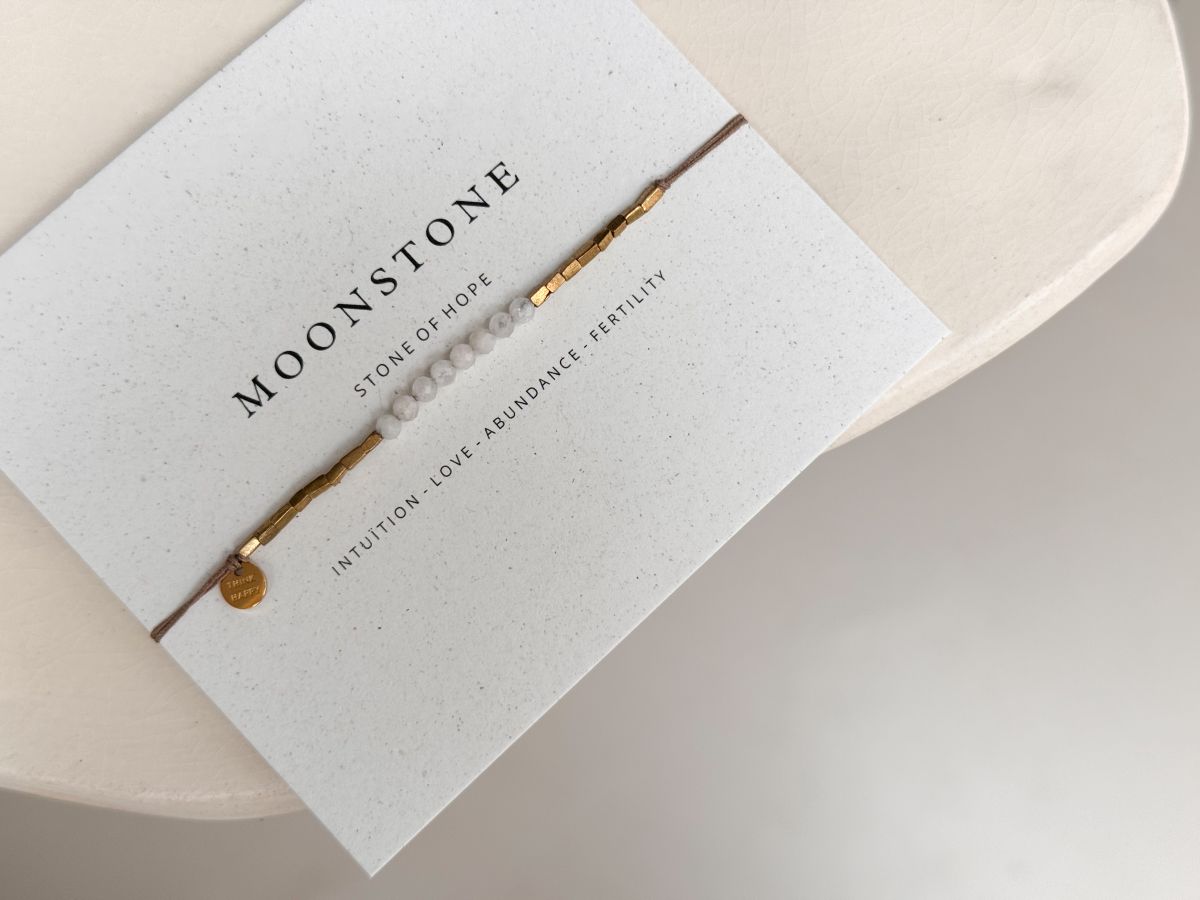Elke Think Happy armband is uniek. Bij elke bestelling kies ik zorgvuldig de beste maanstenen uit. Jouw armband wordt met aandacht en toewijding handgemaakt in ons atelier in Hasselt. Dit maakt de Maansteen armband van Think Happy niet alleen een prachtig sieraad, maar ook een persoonlijk en betekenisvol geschenk dat intuïtie, liefde, overvloed en vruchtbaarheid in je leven brengt.